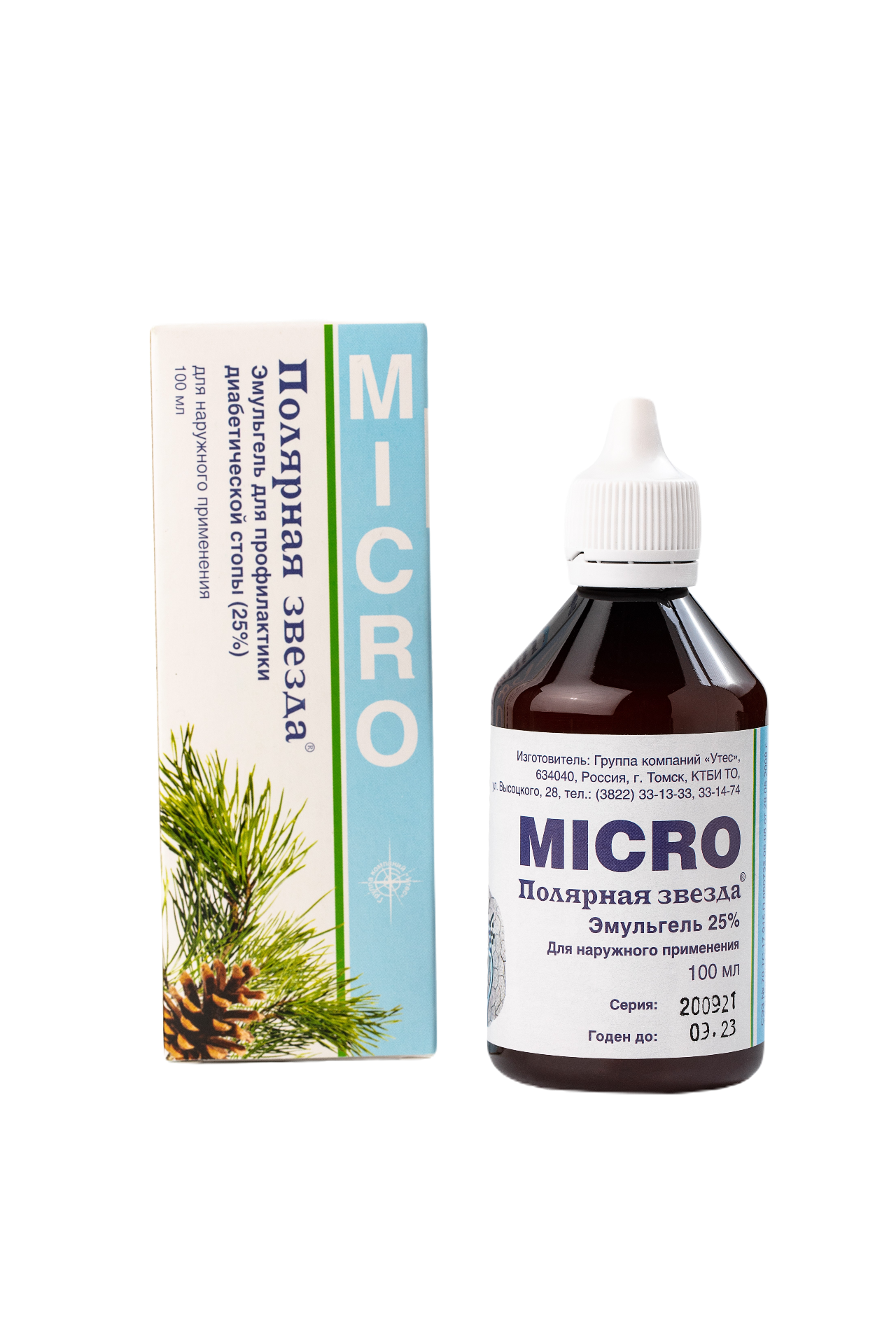 Причиной "диабетической стопы" является ангиопатия, которая приводит к гангрене конечностей. Ангиопатия - это результат нарушения работы микроциркуляторного русла (капилляров) в организме. Эмульгель Микро (Степ) восстанавливает микроциркуляторный кровоток, улучшает транскапиллярный обмен и перфузию тканей, поскольку он содержит терпентинное масло (живицу), которое проникает через кожный барьер.